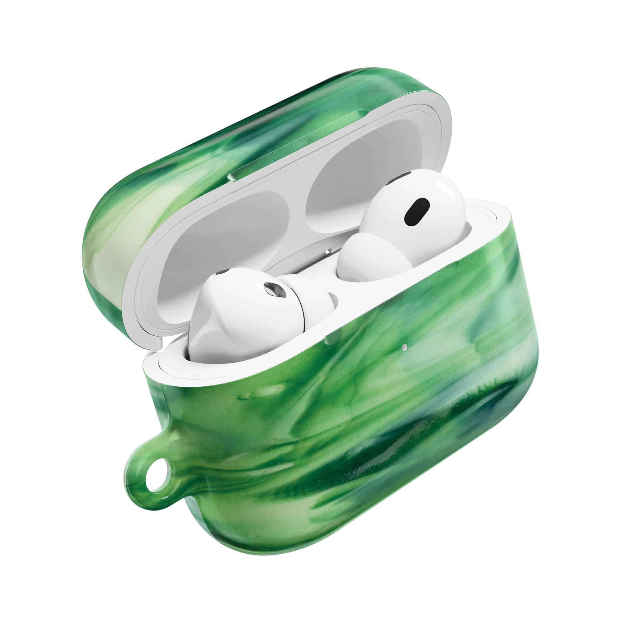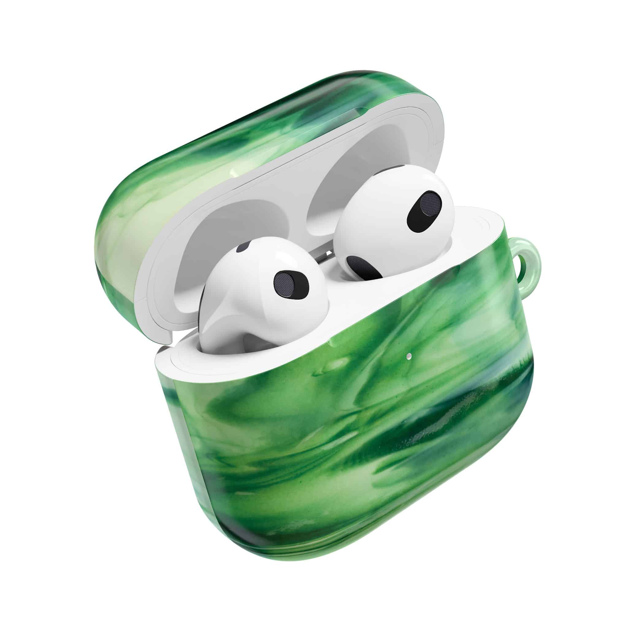 A glossy, slim AirPod case with a swirling green marble design that adds color and protection to your daily carry. Lightweight polycarbonate construction keeps the case thin while resisting scratches and minor impacts. The precise cutouts allow Qi and wired charging without removing the case, and the included carabiner clips easily onto bags or belts…