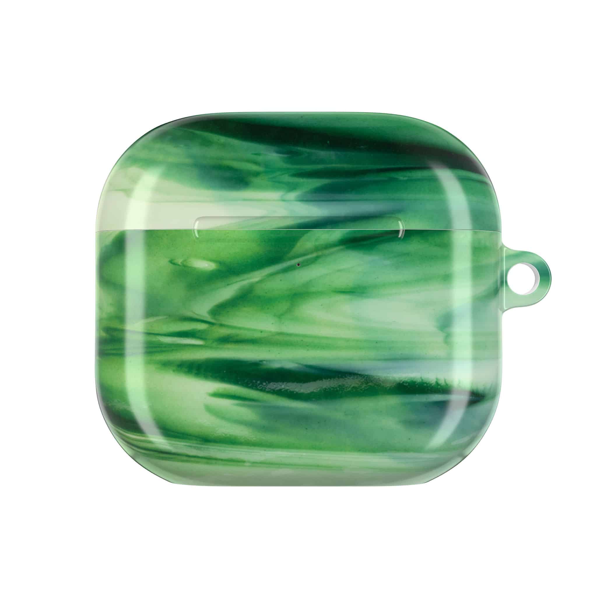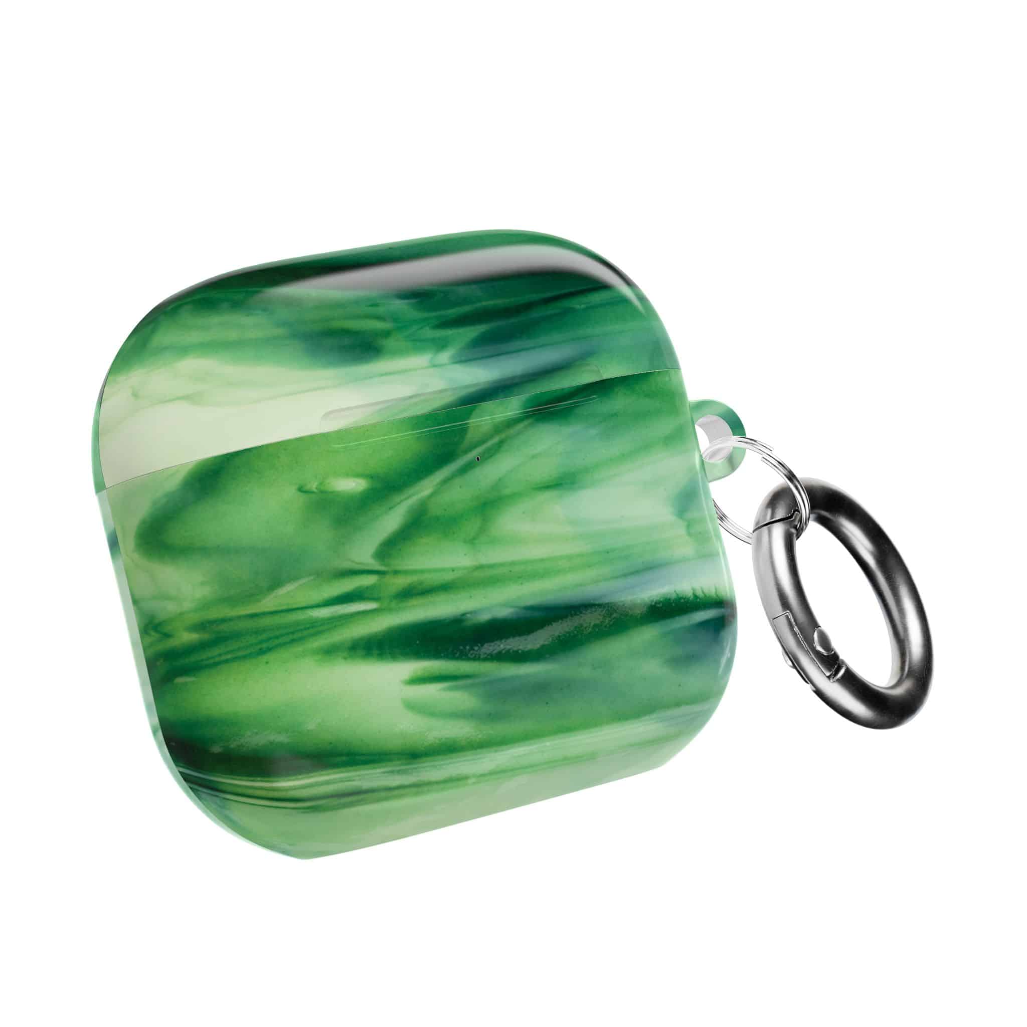 A glossy, slim AirPod case with a swirling green marble design that adds color and protection to your daily carry. Lightweight polycarbonate construction keeps the case thin while resisting scratches and minor impacts. The precise cutouts allow Qi and wired charging without removing the case, and the included carabiner clips easily onto bags or belts for hands-free access. Each piece is made in South Korea and finished with a durable gloss surface that preserves the vibrant print.