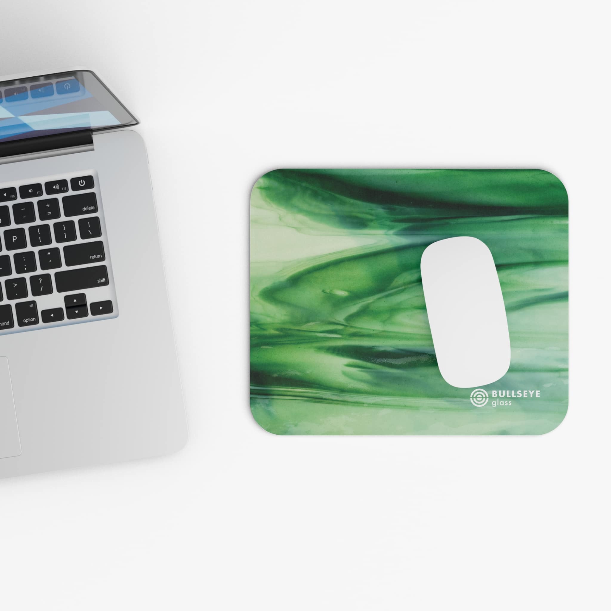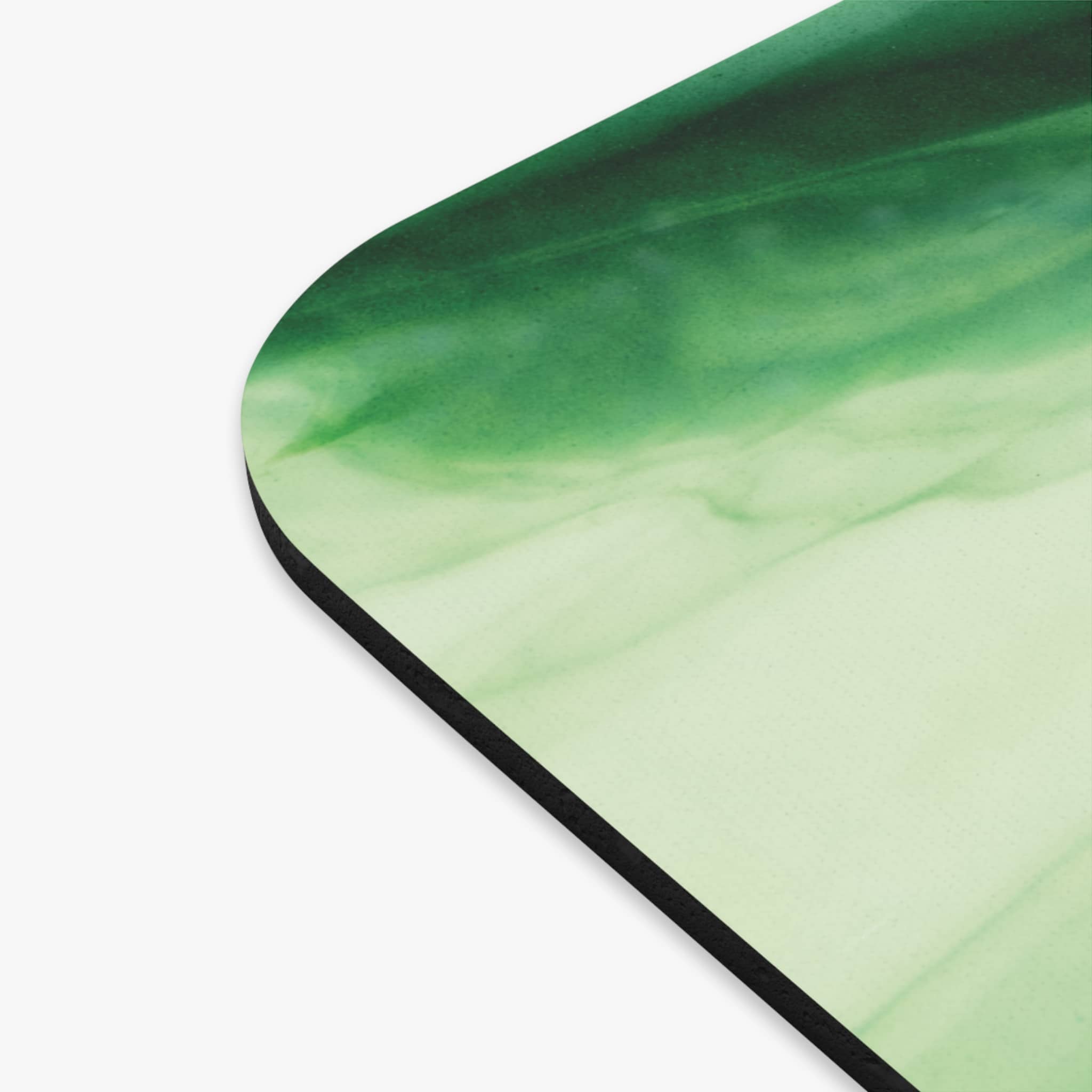 A silky-smooth rectangular mouse pad that brings a calm, organic energy to your desk. The full-front print shows flowing green marbling—soft waves of emerald and seafoam that catch light and movement. Glide your mouse across a low-friction surface while the thin, high-density foam provides subtle support. A grippy rubber base holds the pad steady on wood, glass, or metal desks so your cursor follows your intent, not the mat. It’s understated, tactile, and made to fit into creative workspaces where color and calm matter.